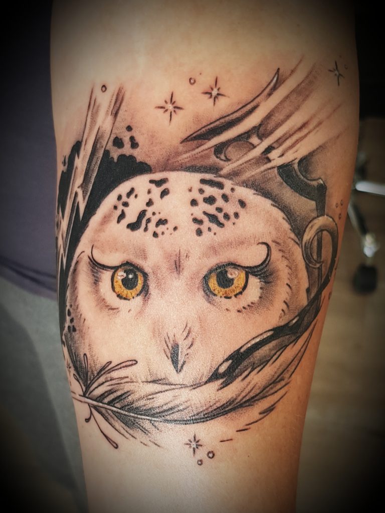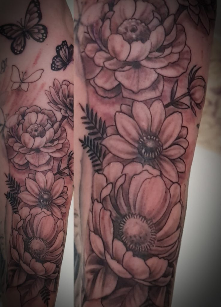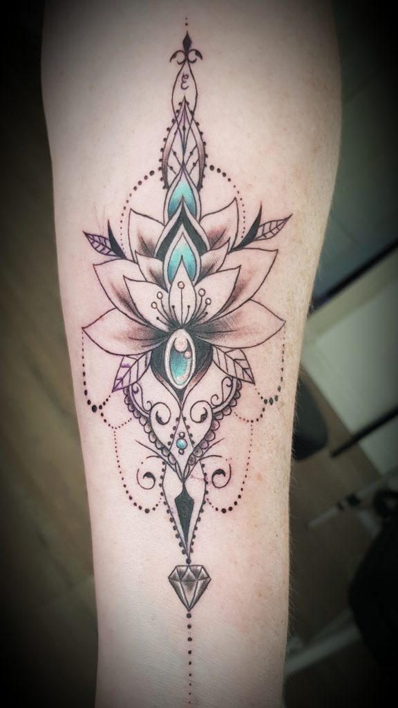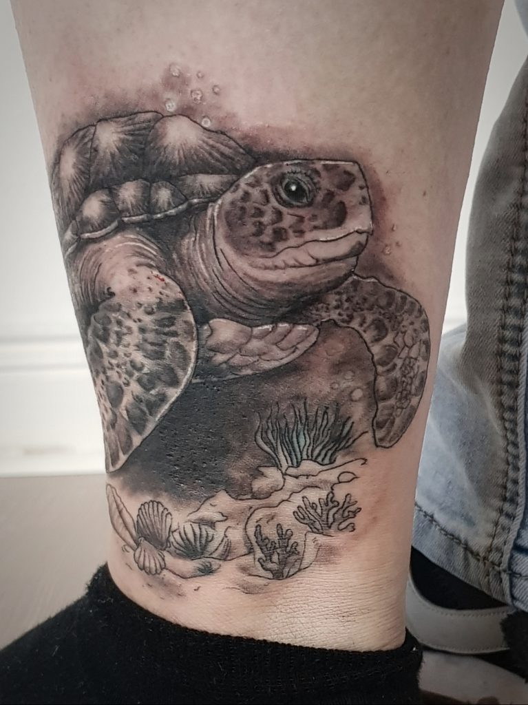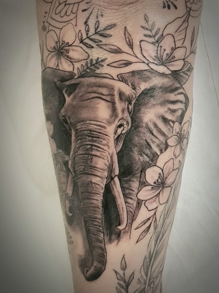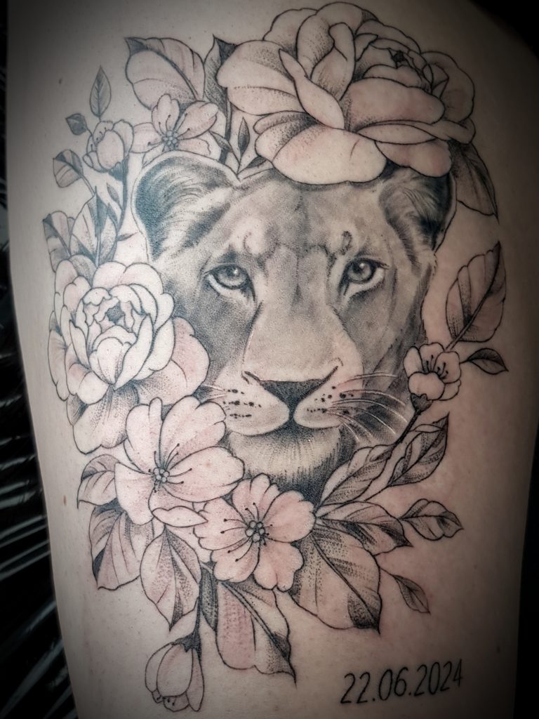 Sie ist Allrounder, aber eher im filigranen Bereich angesiedelt. Das heißt sie arbeite bevorzugt mit feinen Linien und zarten Schattierungen. Gerne als Blackwork, Schwarz-Grau schattiert oder in Farbe.