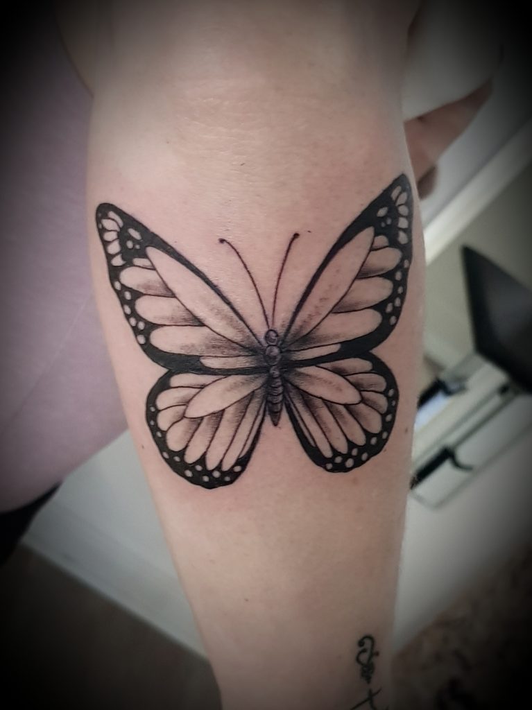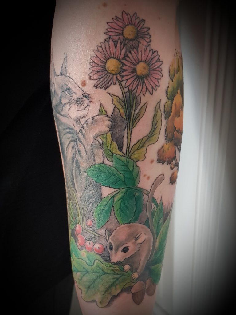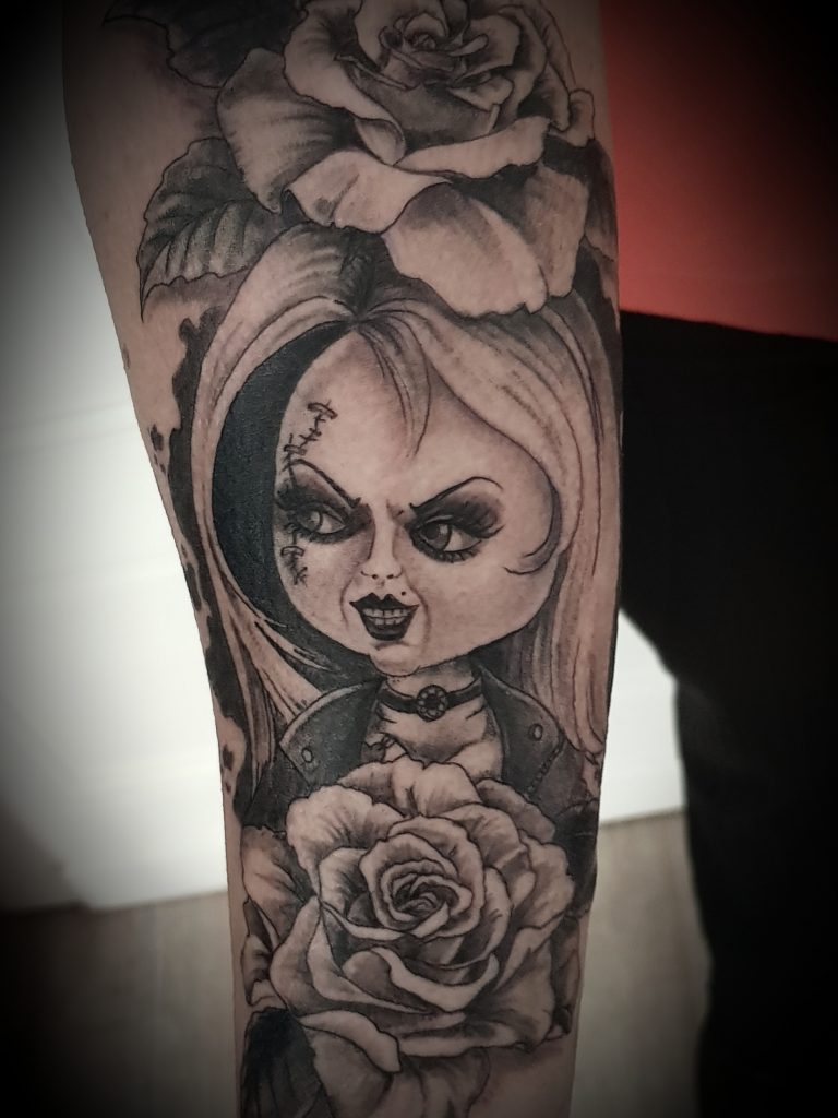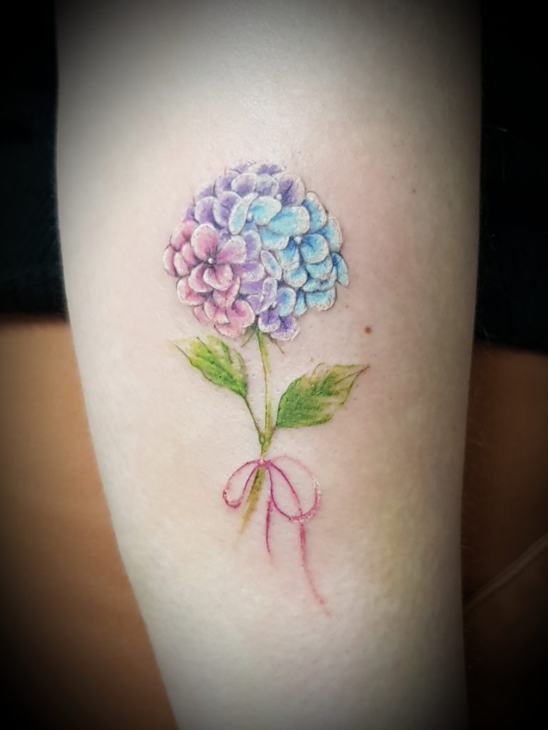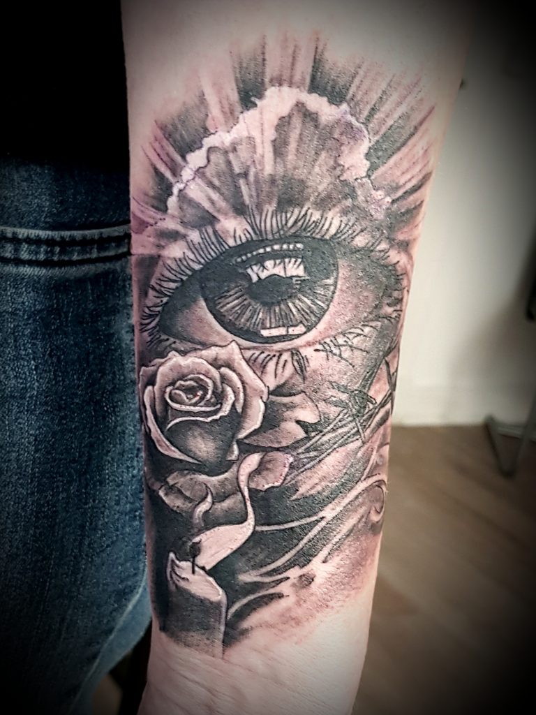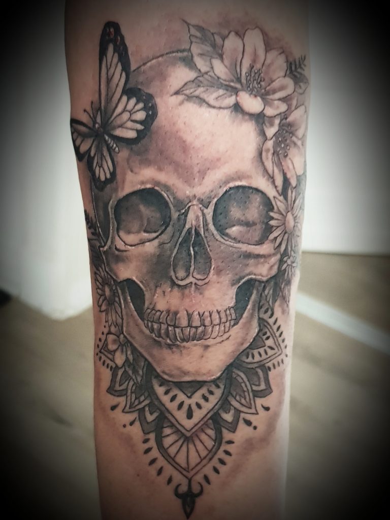 Sie ist Allrounder, aber eher im filigranen Bereich angesiedelt. Das heißt sie arbeite bevorzugt mit feinen Linien und zarten Schattierungen. Gerne als Blackwork, Schwarz-Grau schattiert oder in Farbe.