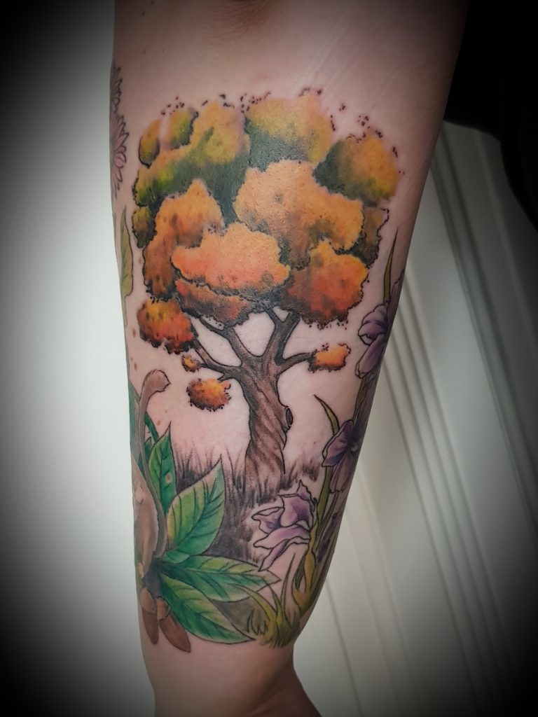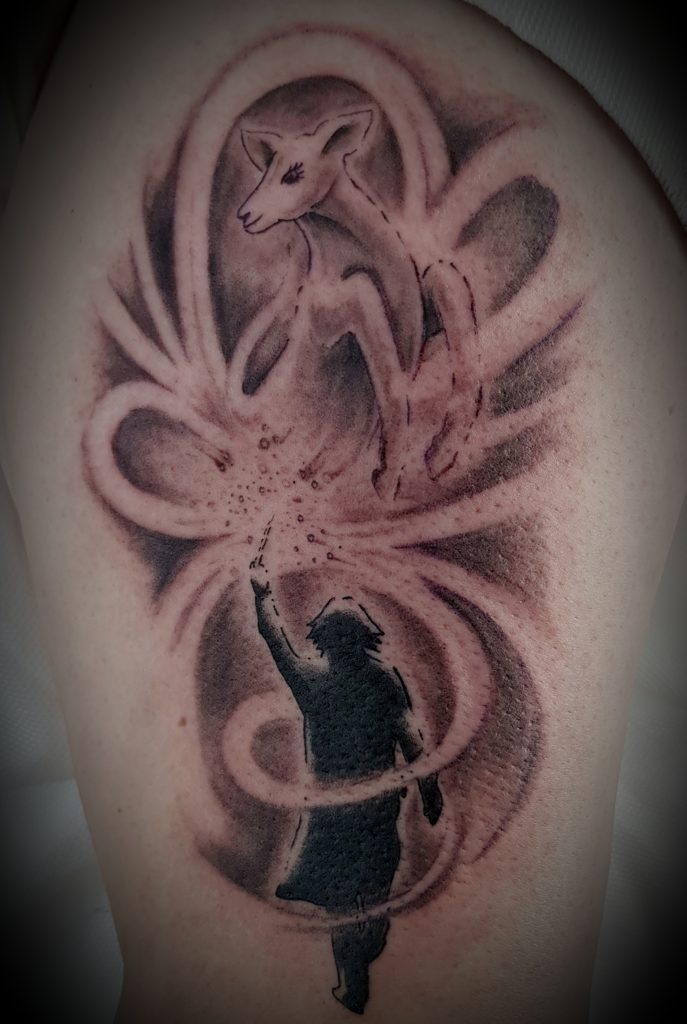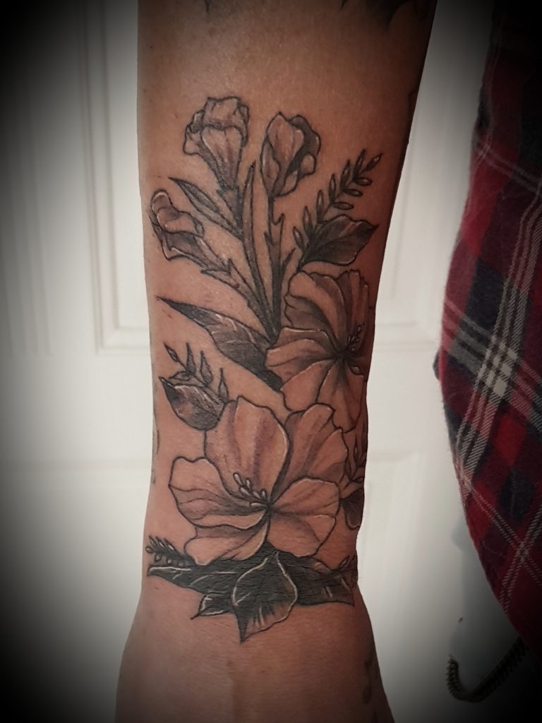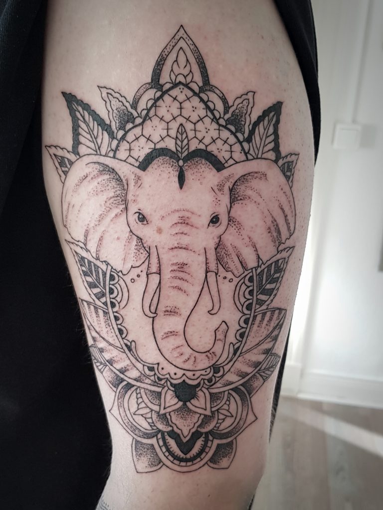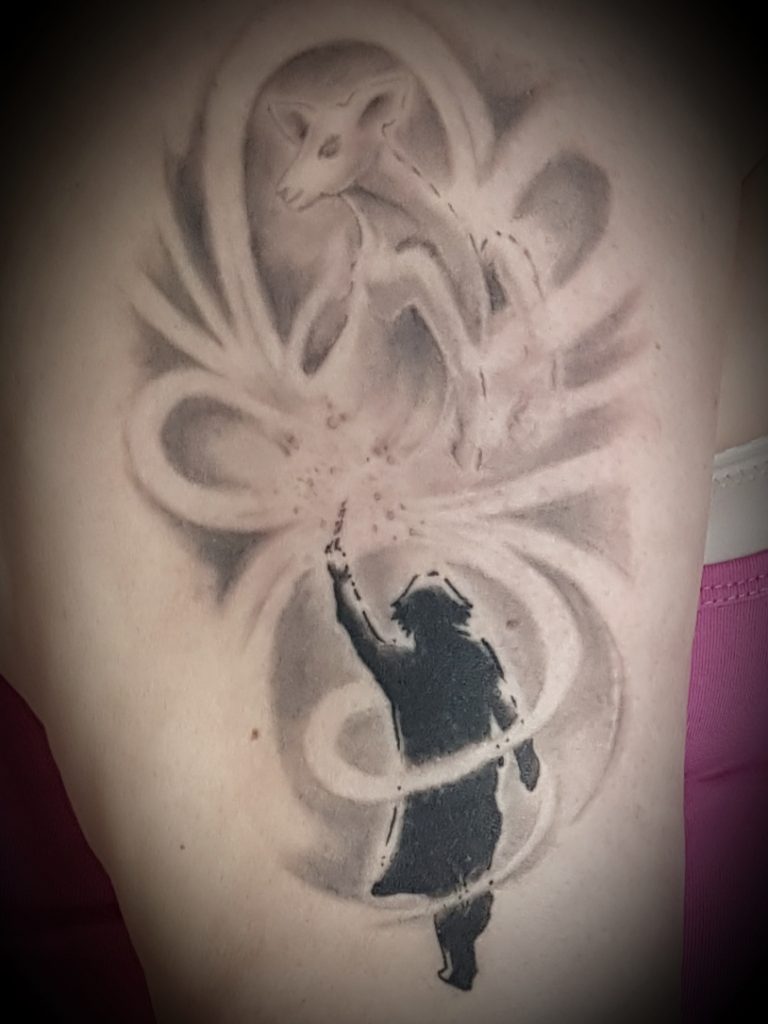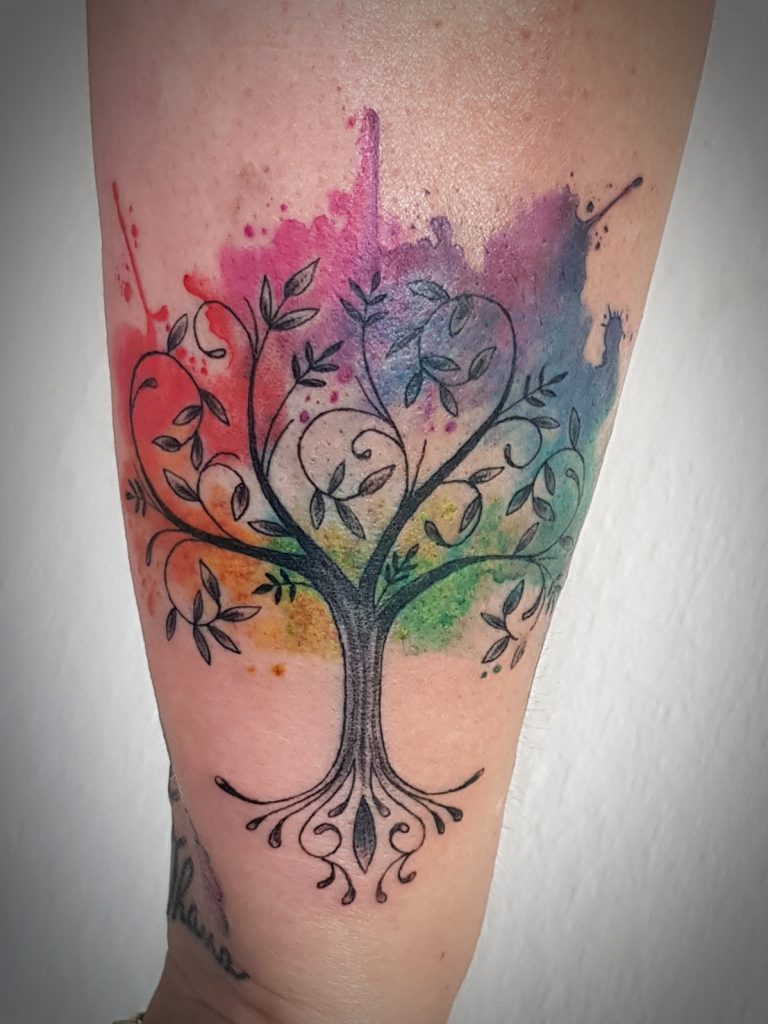 Sie ist Allrounder, aber eher im filigranen Bereich angesiedelt. Das heißt sie arbeite bevorzugt mit feinen Linien und zarten Schattierungen. Gerne als Blackwork, Schwarz-Grau schattiert oder in Farbe.